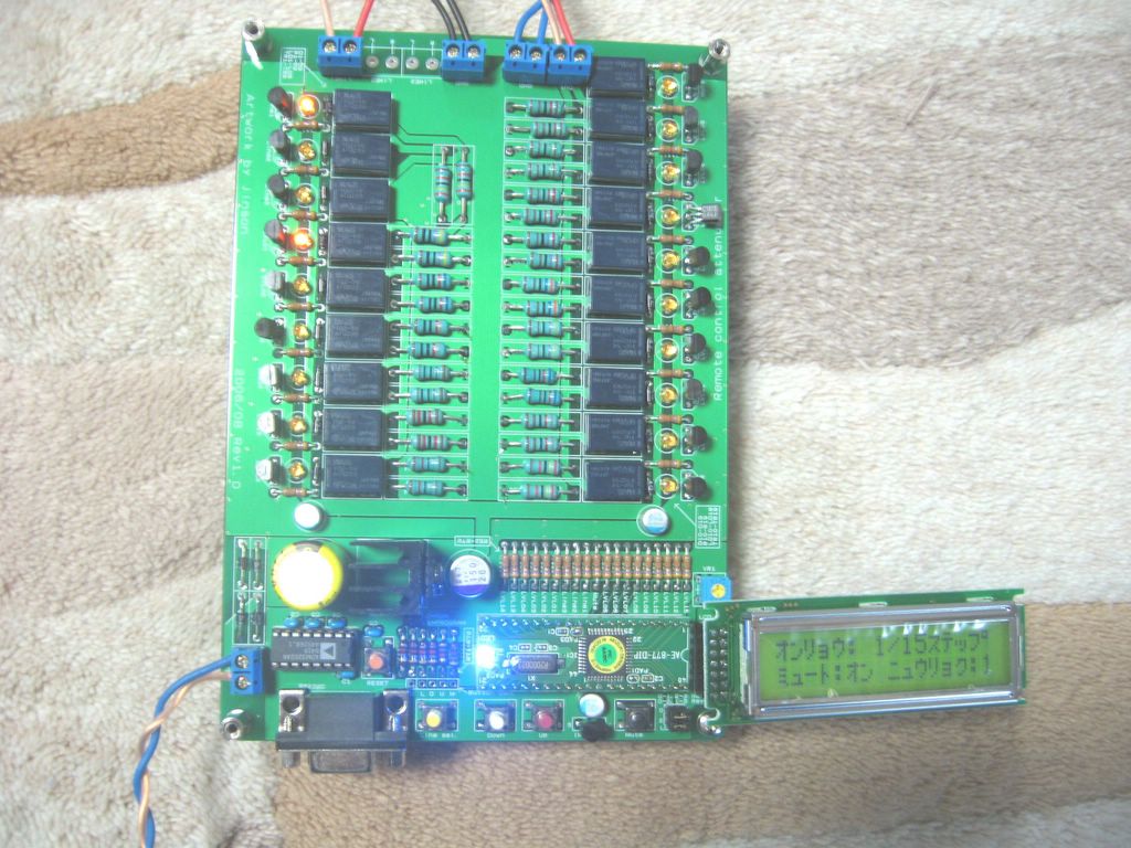 リモコンアッテネータ試作基板が届いたので早速作ってみました。いやあドキドキしました、感動ですねー。