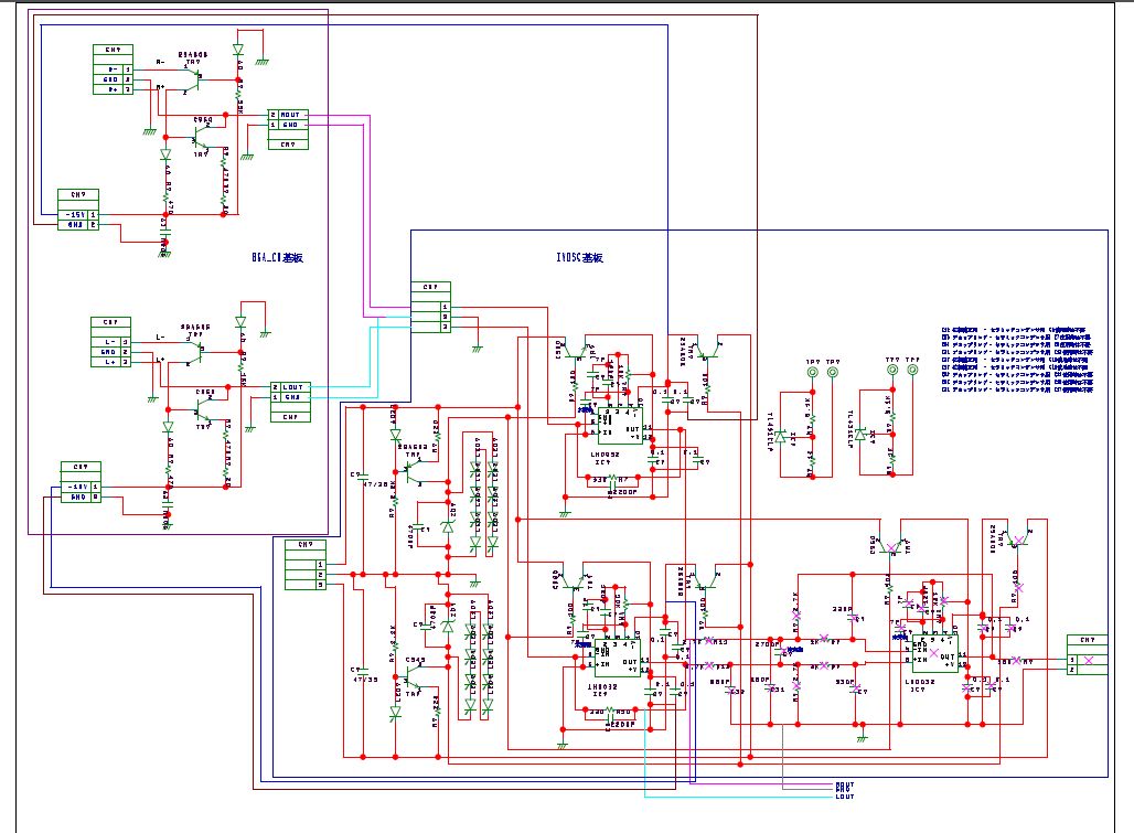 R10(330Ω)にパラしてあるC9とR7(330Ω)にパラしてあるC5に2200pfを入れてR11(2.7k)とR12(2.7k)