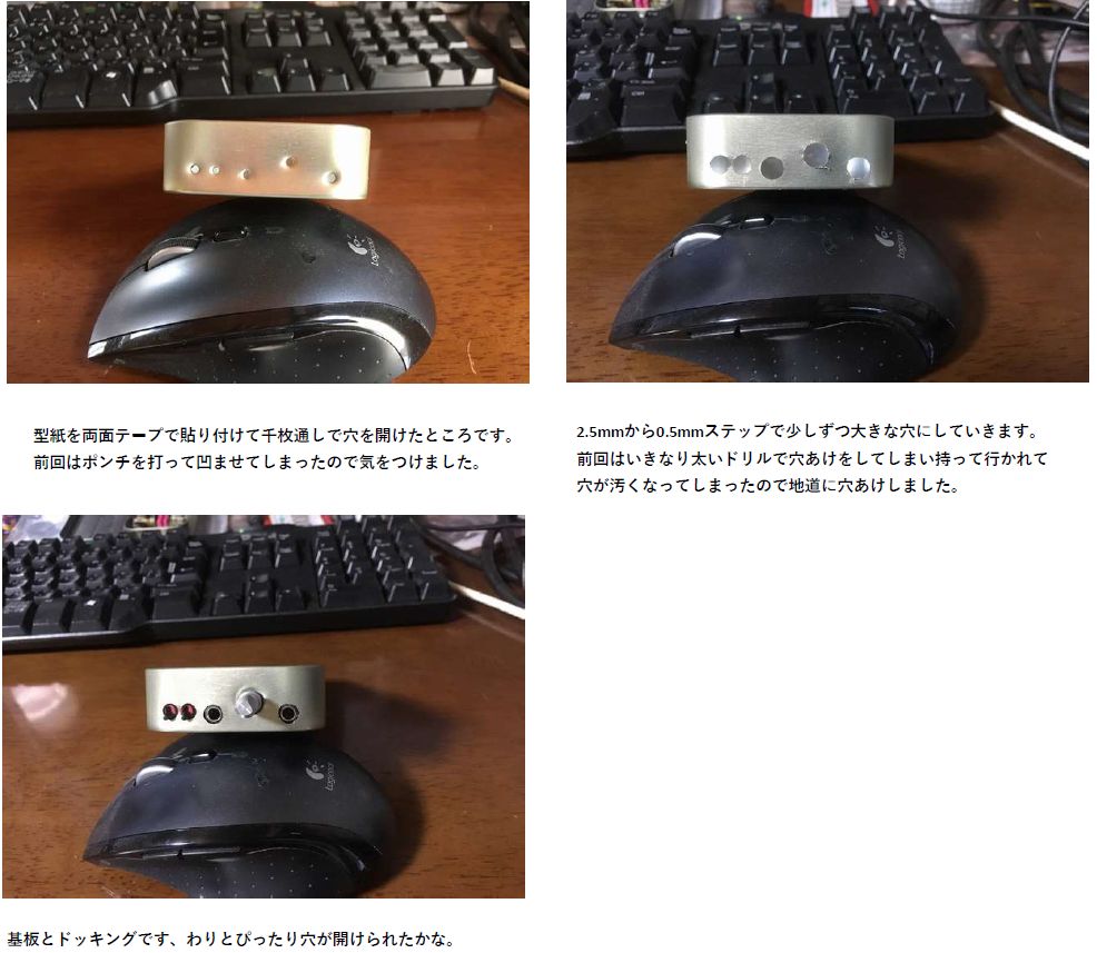 さてさてケーシングです。この缶は肉厚が薄いので気をつけないとドリルの力でひしゃげてしまいます。