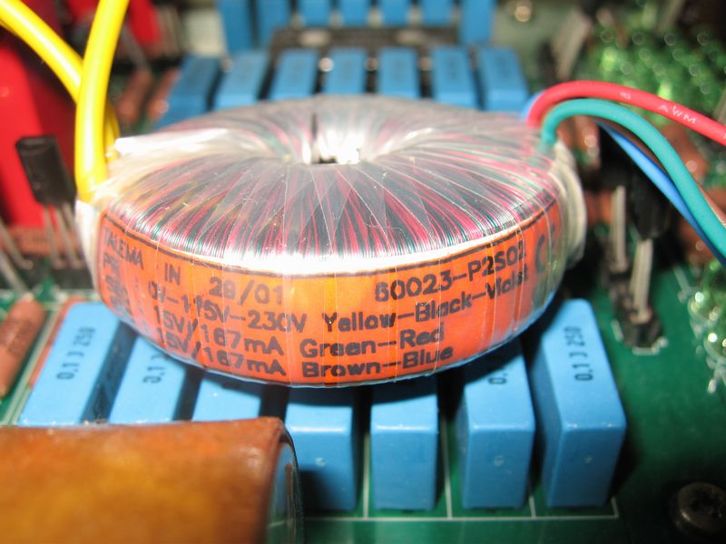 1541EPIの±15V系をRA40のRコアからトロイダルに変更してみました。Rコアトランスに比べて低域の重心がぐーんと下がってくるのが特徴です、全体に音が生き生きして音量が上がったみたいに聴こえます、トロイダルの2次側の巻き線方向を逆さにつないで見ました、さらに元気のある音になって重心はますます低く、ウッドベースの弦を弾く音やバスドラの歯切れの良さがくっきりしてきました、これはかなり良いですところで自作をしていて「トランスの 2次側の極性を合わせる」といのをあまり耳にしたことがないのですが、やっぱ常識なんでしょうか、1次側つまりコンセントの向きで音が大きく変化するのは良く知られていますね、私は1次側を合わせたら2次側も比較試聴して合わせます、巻きはじめがトンランスに明記してある場合もありますが結構いい加減だったりします。巻き線の向きが合っていると全体に元気のある音になります、低域の重心が下がるのも極性が合っている場合の特徴です、反対にもっさしたとか柔らかいという音になったらそれは反対です。さて、次回は±5Vと+5Vもトロイダルトランスに置き換えです。